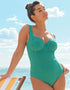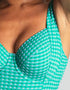Tick all your holiday style boxes with Panache's Paloma swimsuit in a chic green gingham. This gorgeous swimsuit combines classic style with fun design, promising comfort and support. Consciously developed using recycled gingham fabric that's gently textured for a luxe, premium feel. A powermesh lining in the front offers gentle shaping, while denier-lined cups give uplift and support with a 3-piece balcony cut and side panels for great shape.