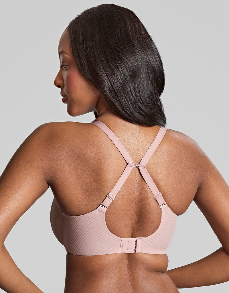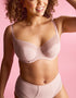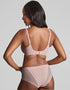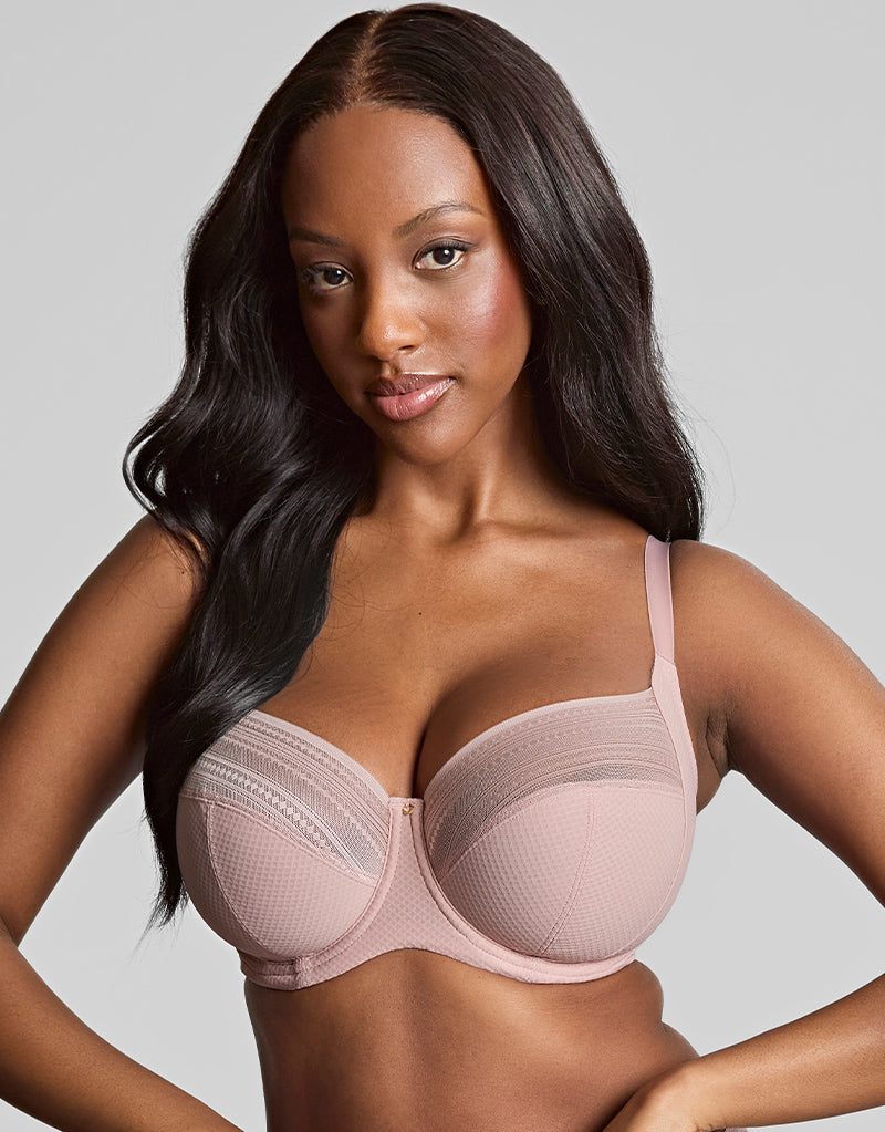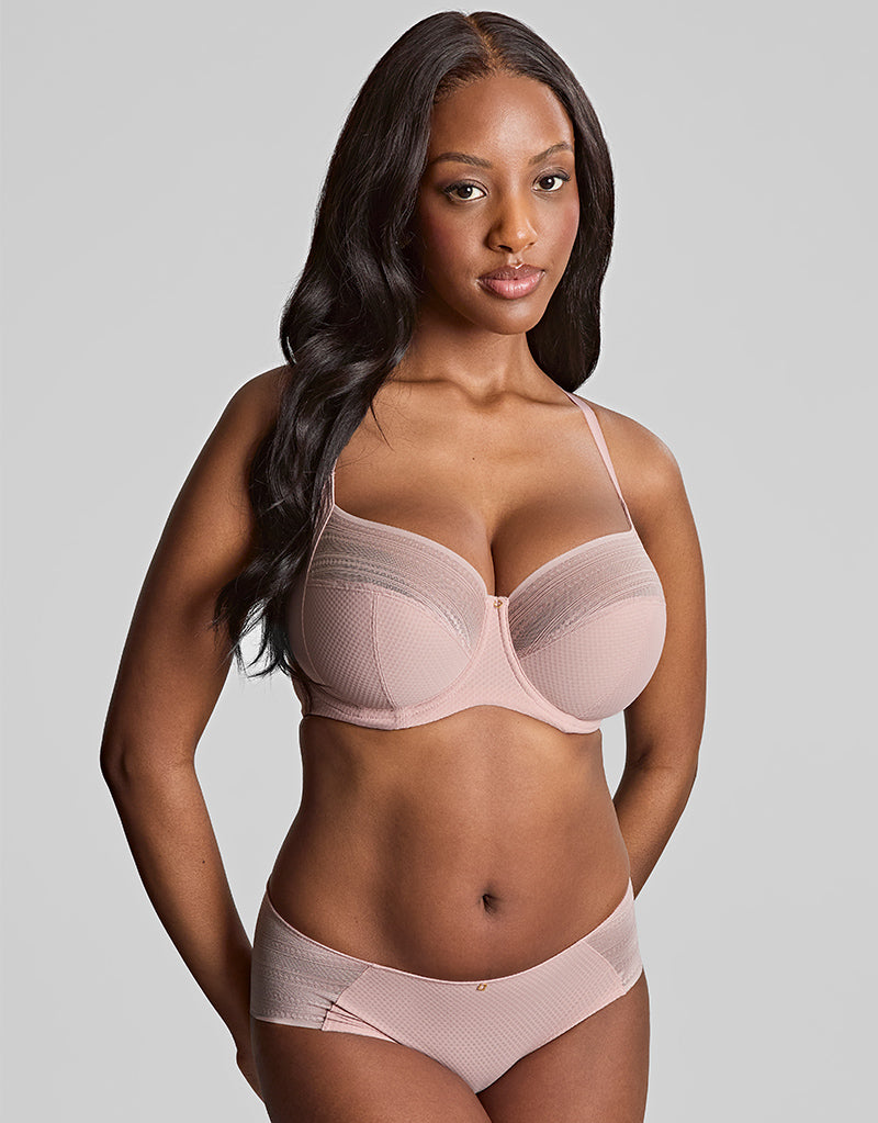 The Panache Serene range is gorgeous in a soft vintage blush pink. With a fuller cup shape, this simple yet pretty design offers a fantastic fit in soft fabrics and recycled elements. A specially engineered stretch lace in the top cup offers a flexible fit that moves with your curves while ensuring total support, and the 4-part cup with side panels gives great shape to your bust.
