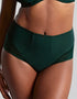The Serene high waist brief from Panache is stunning in deep green. Offering a fuller coverage fit and crafted from soft fabrics with recycled elastic content for a second-skin fit. Smooth, flat seams keep it sleek under clothes, with stretch mesh trims to the leg line for added comfort and a fit that moves with your body.