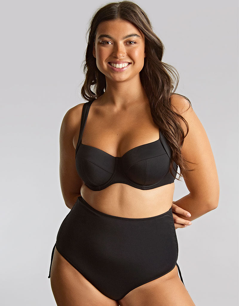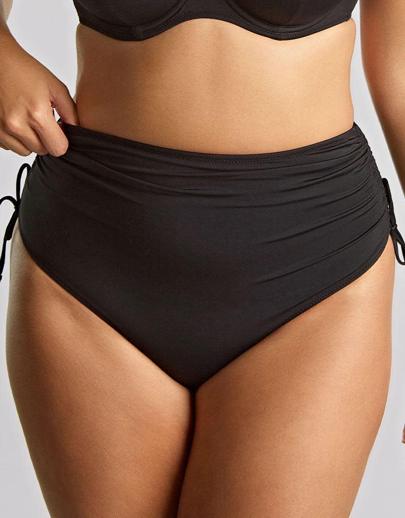 The Panache Signature midi bikini brief is here to elevate your holiday style! In classic black this brief is easy to mix and match with your favourite bikini or tankini tops. Sitting higher on the waist it gives good coverage with adjustable drawstring sides so you can control the height of the leg line to suit your preference.