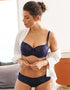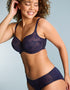 The Panache Tango balconette bra in navy offers understated, sophisticated style. A great alternative to a basic black bra, this rich navy hue is adorned with gorgeous leaf embroidery across semi-sheer, laminated 3 part cups. Finished with comfortable, non-slip straps it's a staple piece in every lingerie drawer.