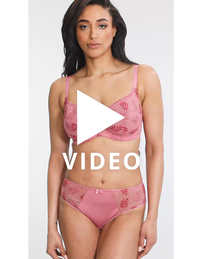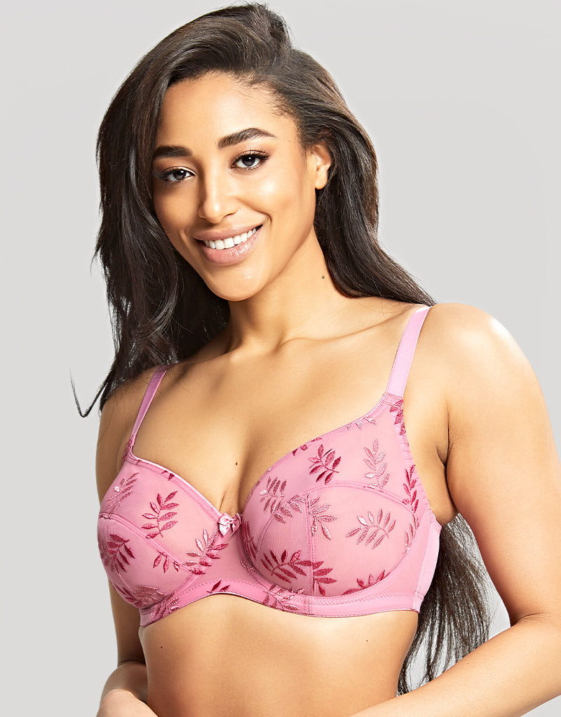 Panache's iconic Tango bra returns in a pretty rose pink for SS23! This gorgeous colourway suits any skin tone, and its instantly recognisable leaf embroidery adds depth and femininity to this supportive everyday style. Laminated, non-stretch cups ensure an uplifted and projected shape, with fuller coverage for a secure, all-day every-day fit.