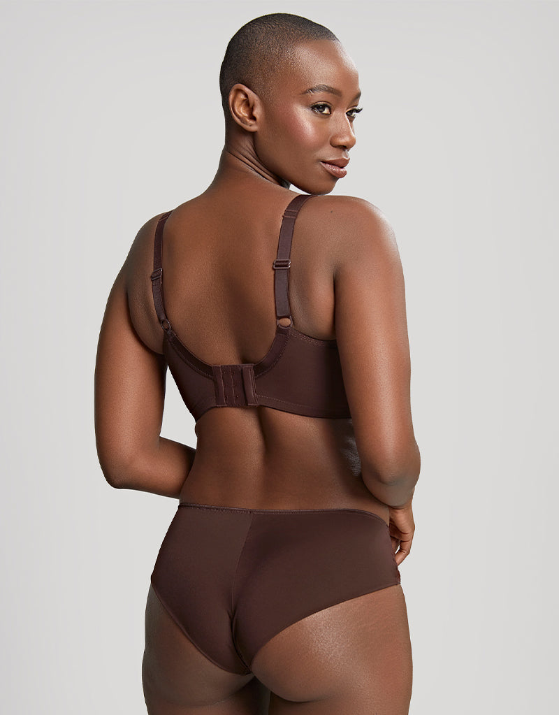The Panache Tango brief in Nutmeg is made from a soft mesh to give a comfortable fit, cut in a classic knicker shape and finished with pretty leaf embroidery.