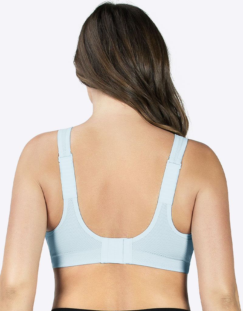 For comfort and support during your low to medium intensity workouts, choose the Parfait Active wireless sports bra. The chic granite blue hue offers something different to neon or black gym-wear, with a contrast mesh high neck detail. Shoulder straps attach with a swan hook and a series of loops, allowing for adjustment in length and also cross-back conversion.
