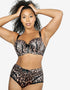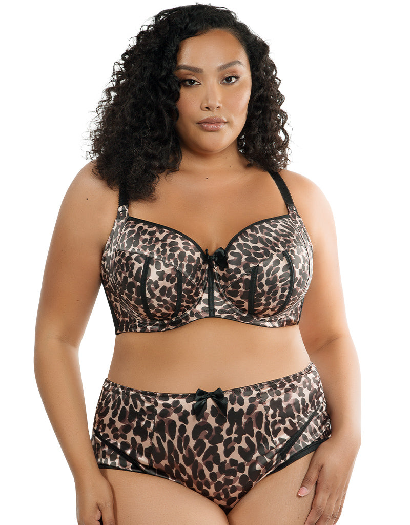 Release your wild side with the Parfait Charlotte bra in leopard print! This sultry and sexy style offers fantastic lift and shape thanks to the foam lined cups, with an outer sling to help aid projection of your bust. Styled in soft satinesque with matte black piping to contrast, it gives retro vibes all-round.