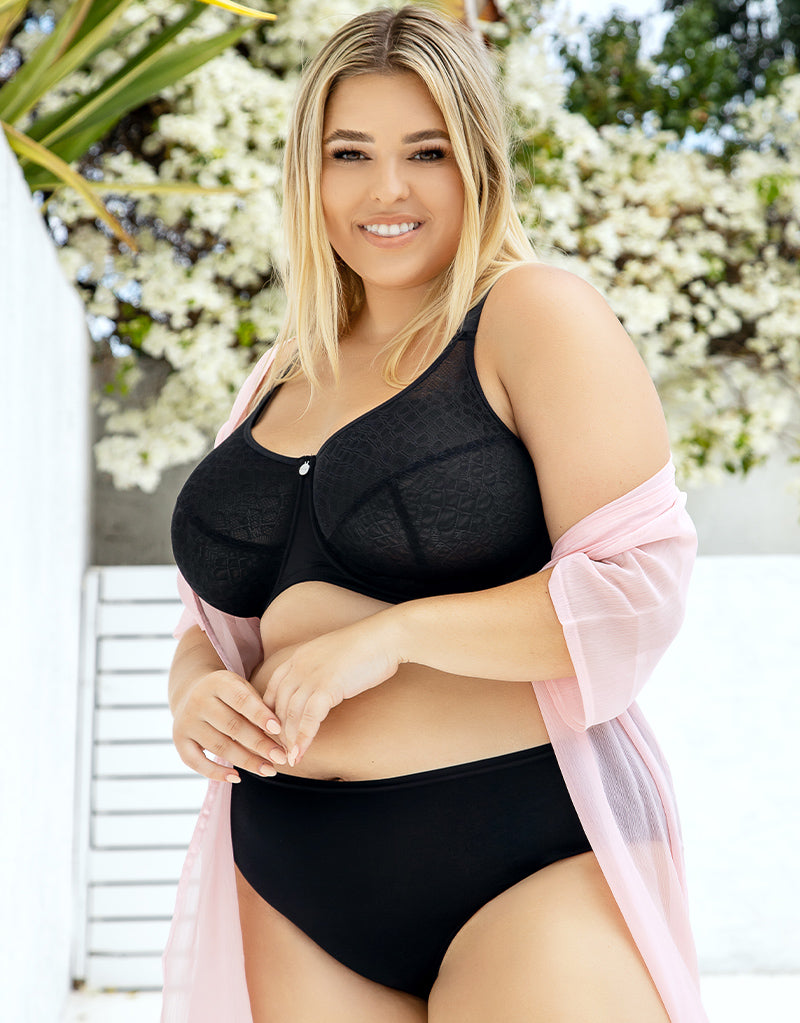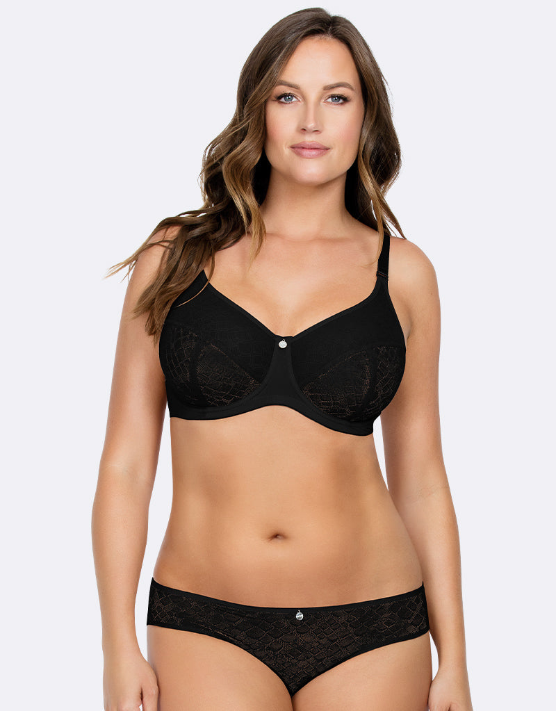 The Parfait Enora minimiser bra offers a comfortable fit that reduces the size of your bust by up to 1". Constructed from soft, stretch mesh with a chic geometric pattern, the 3-part cups offer fuller coverage for a secure fit. Underwired with comfortable straps and powermesh wings for all-round support.