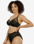 The Parfait Paige balcony bra offers a smooth, comfortable fit with an elasticated neckline. A 3-part cup cut in a fuller coverage shape offers modesty without feeling frumpy thanks to the sheer mesh and geometric fabric, complete with an inner mesh lining to support and uplift fuller cup sizes.