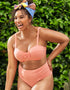 The Parfait Vivien high waist bikini brief is oh-so-cute in a blush pink hue. Made with a soft, textured fabric with shirred sides, this chic number ensures full coverage and comfort so you can focus on enjoying yourself!