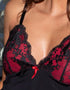 Ramp it up with the Pour Moi Amour Luxe chemise. The rich scarlet cups are overlaid with a romantic black floral lace, meeting a super soft microfibre skirt that clings to your curves in all the right ways. Finished with adjustable skinny straps and a seductive red ribbon lace up rear.