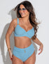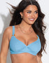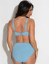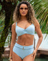 The Pour Moi Cali bikini top is cute and sunshine-ready in a pale ocean blue. This stylish swimwear top is made using recycled polyester content, in a soft ribbed fabric that feels luxurious on the skin. O-ring detail on the strap apexes add a chic finish, while hidden underwires offer D+ support and amazing shape so you can look and feel fabulous!