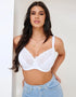 Upgrade the everyday with Pour Moi's Floral balconette bra in white. Delicate, pretty lace overlays an opaque bottom cup, offering a ligthweight and romantic style while still keeping covered.