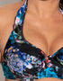 Your suitcase just got an update with the Pour Moi Lisbon halter bikini in black floral. This stylish and supportive D+ bikini top features medium coverage cups for a secure fit with great shape, non-padded and underwired for comfort and support. Styled with halterneck ties featuring frill detail and a bow at the centre front for a feminine finish.