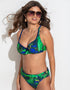 Upgrade your swimwear wardrobe with the Pour Moi Palermo fold over bikini brief in a navy blue with tropical green fern print. Classic and chic, with a medium coverage brief that features a fold over waistband to be worn high or low on the hips at your preference. Contains recycled polyamide fibres.