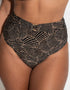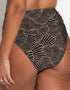 Give your suitcase an update with the Pour Moi Samoa high waist control bikini brief. In black with a seashell inspired gold print its super chic, cut in a higher rise with full rear coverage. A gathered waist detail features a gold ring belt accent, while a gentle tummy control panel supports your curves.