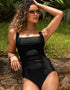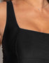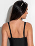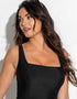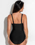 The Santa Barbara swimsuit from Pour Moi is classic and easy to wear in timeless black. Featuring flattering ruching details and a gentle control mesh panel to sculpt your curves, it offers a sleek fit with modern styling. A square neckline gives medium coverage on the bust, with a non-wired design for comfort and gentle support and containing recycled fibres.
