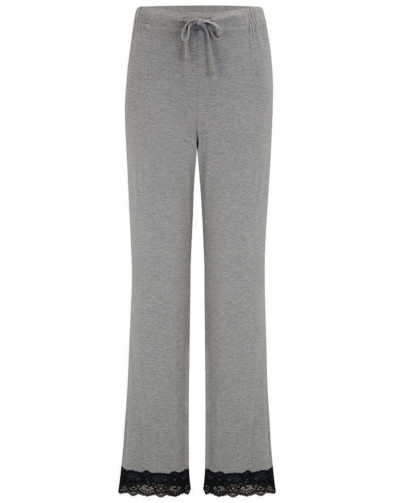 The Sofa Loves Lace jersey trouser from Pour Moi is super stylish in grey marl with black lace trims. A full length leg keeps you cosy, with an elasticated drawstring waistband. Perfect for both lounging and sleeping!