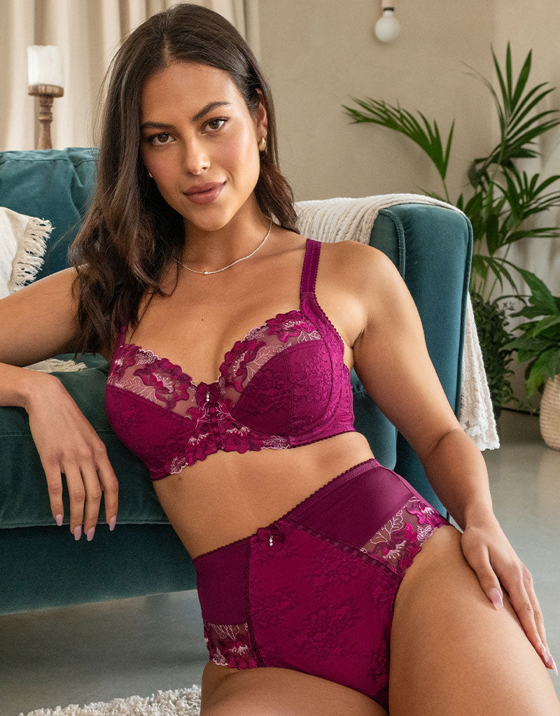 The Pour Moi Sofia Lace deep brief is stunning in a rich berry purple, complemented by contrasting pink embroidery details. Offering good coverage with a high rise waist and fuller bottom cut, made from soft microfibre for a second skin fit and feel against the skin.