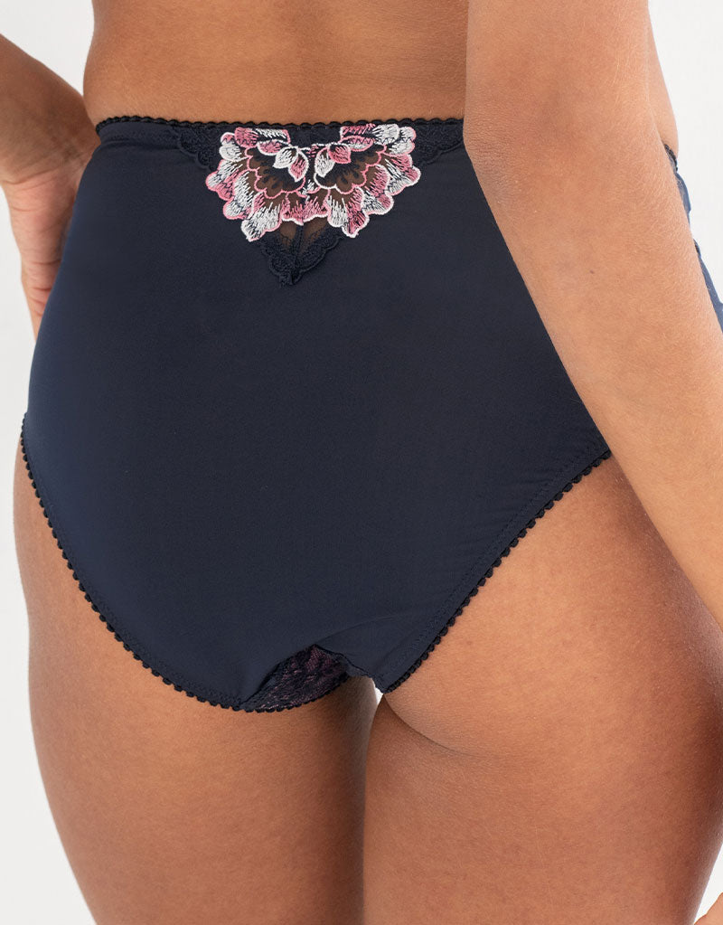Sofia Lace Embroidered Deep Brief Midnight Blue/Rose Pink