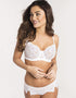 The Pour Moi St Tropez bra has a scalloped edge to its opulently embroidered cups. Styled in firm mesh, this semi-sheer bra has plain slim adjustable straps and is decorated with a bow at the central gore.