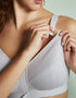 Introducing the Royce Fearne front fastening wirefree bra. This clever design puts comfort and accessibility first, with a series of front-fastening swan hooks and a zip to securely hold your bust, and innovative front-adjusting lightly cushioned shoulder straps to help you find the perfect fit. Lined with a soft organic cotton that's perfect against sensitive skin, and concealed pockets for a prosthesis if needed.
