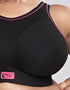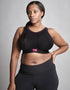 Designed to give you maximum support for any sport, the Royce Impact Free Sports bra is understated in all over black, with bright pink piping and logo. With cotton content and padded straps, this high coverage sports bra should become your go-to to keep the girls secure during your workout.