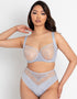 Scantilly's exquisite Fallen Angel set returns in a luxurious silvery blue hue, giving us those bridal vibes (something blue, anyone?). The half cup balcony shape gives incredible uplift and support for DD+ cup sizes, with a decadent satin outer sling that not only looks gorgeous but helps shape and project your bust too. Decorated in a stunning, shimmery blue wing embroidery across sheer tulle cups and complete with double shoulder strap detail for romantic vibes aplenty.