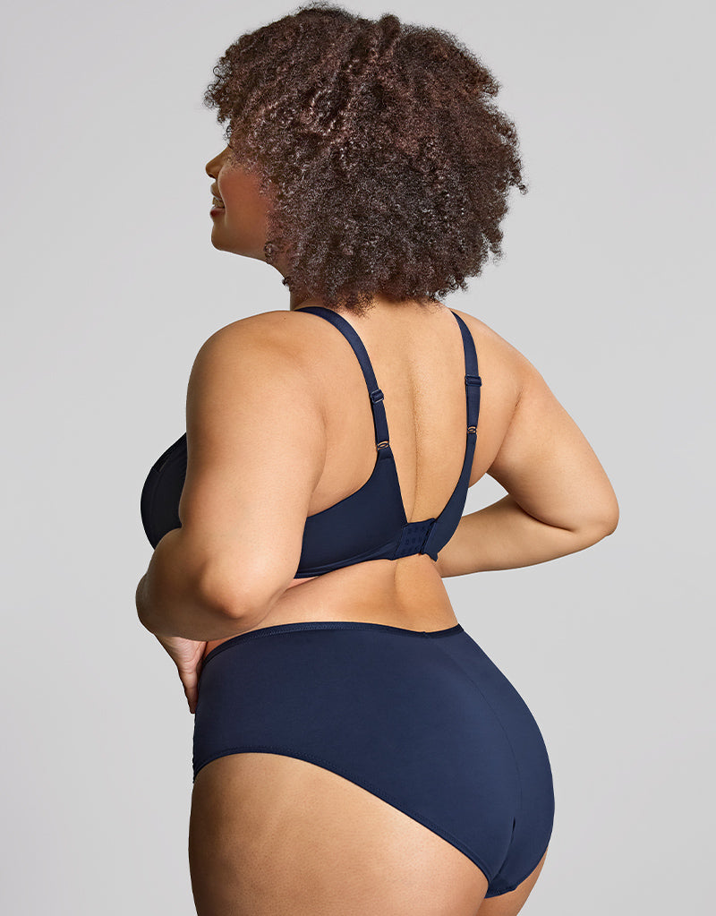 The Sculptresse Alexa deep brief is stunning in navy blue, giving sophisticated style for day to day wear. A fuller coverage, high rise cut keeps you feeling comfortable and secure, with mesh panels at the hips that feature tiger stripe inspired embroidery to add a touch of fierceness.