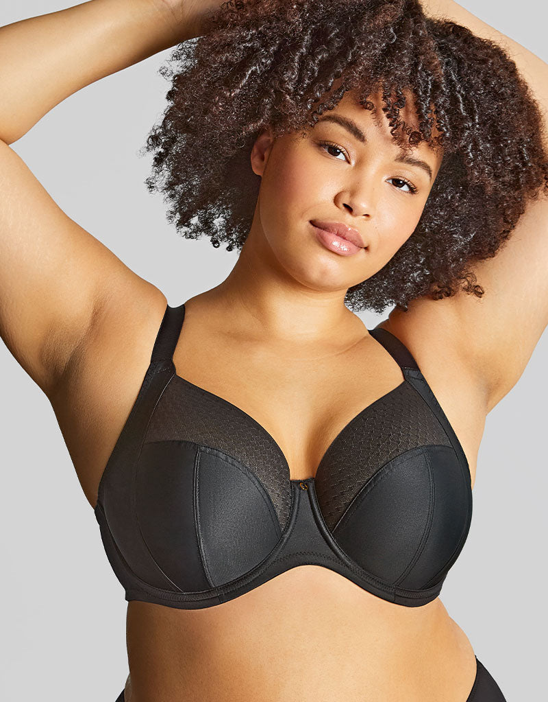 Meet Bliss - the latest style in the Sculptresse by Panache range. The timeless Noir black shade is welcome in every lingerie collection, and makes the perfect foundation to your everyday outfits. Modern, sleek styling offers a no-fuss fit, featuring geometric stretch mesh top cups and smooth, unlined bottom cups with side support panels for incredible support and shape. Innovative 'semi-racer' design to the wings brings the shoulder straps in towards the centre of the back band, preventing them from slipping off your shoulder without the need for a racerback J-hook.