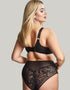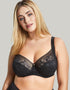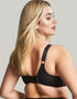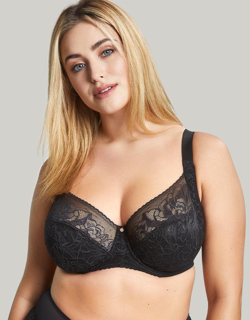 Welcome the brand new Dream full cup bra from Sculptresse by Panache. This timeless, easy to wear Black hue features silver detailing to offer a truly lavish look. Striking stretch lace top cups are paired with opaque, stabiliser-lined bottom cups to give uplift, support and incredible fit, with a side panel that gives forward projection. Offering good coverage in the cup, this full cup bra is a versatile, luxurious style. Finished with shaped wings that gives a ‘semi racer’ effect to centralise the straps and increase comfort.