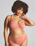 The Sculptresse by Panache Dream brief has a high waistline for a comfortable and secure fit offering extra coverage with stretch mesh and lace panelling that fits your curves perfectly. Styled in a pretty rose pink for everyday sophistication.