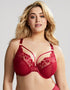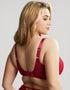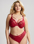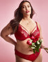 We're in love with Jaida! This gorgeous fuller cup plunge style from Sculptresse by Panache ticks all our lingerie must-have boxes in a scarlet red hue, offering a flirty low neckline and great shape without compromising on fit. Non-padded, mesh cups are lined with stabiliser in the bottom to add modesty and support, while the top cup is embroidered with luxurious feeling florals meeting over-bust strap detail. The bandless shape is ideal for those with shorter torsos or higher tummies, as it prevents discomfort from digging underbands. Plus, the comfort elastics are made from recycled yarns.