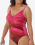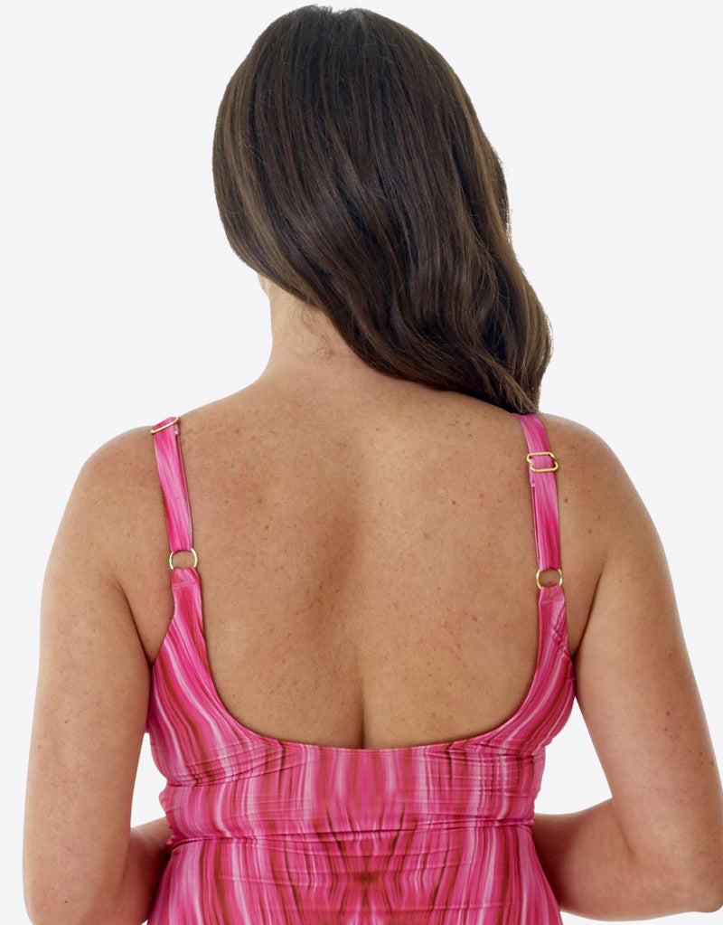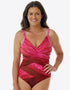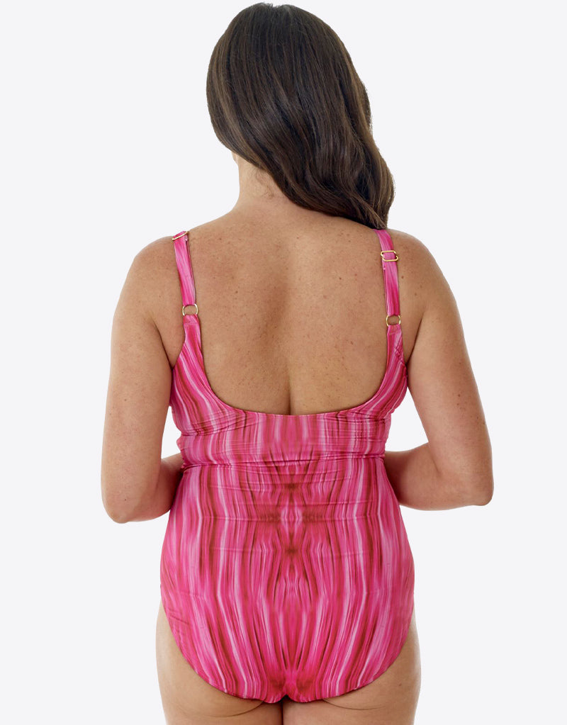 Get easy holiday style with the Seaspray Rosa swimsuit. This ombre effect pink and maroon swimsuit features wrapped fabric for a draped effect, that highlights your curves and offers a flattering effect. A lightweight control mesh offers a gently smoothing effect across the tummy area without feeling uncomfortable and restrictive.