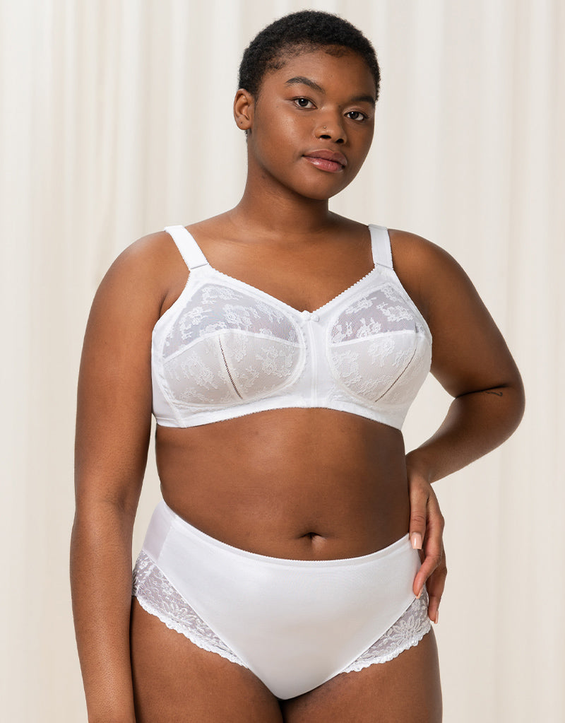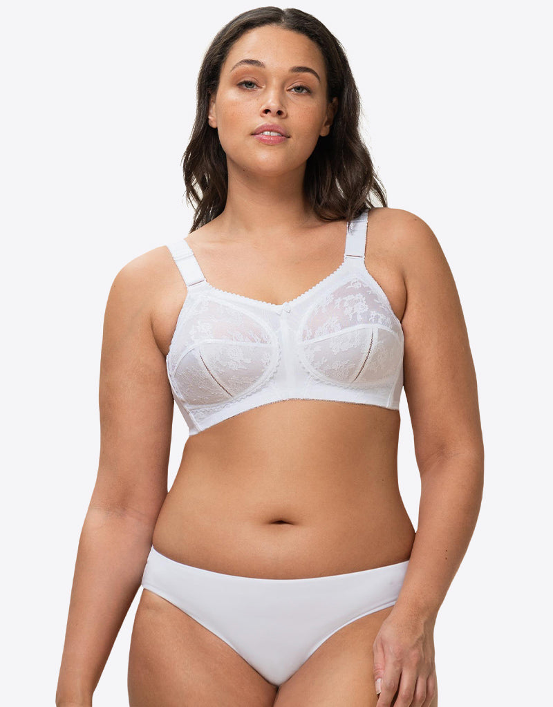 Triumph's Doreen non-wired bra is an iconic lingerie style, world-renown for its fantastic fit and support without wires and has been the brand's bestselling style for over 40 years. This timeless design offers a traditional, projected shape with good separation and full coverage, in sturdy but soft fabrics. Complete with wide shoulder straps that adjust from the front for ease of access.